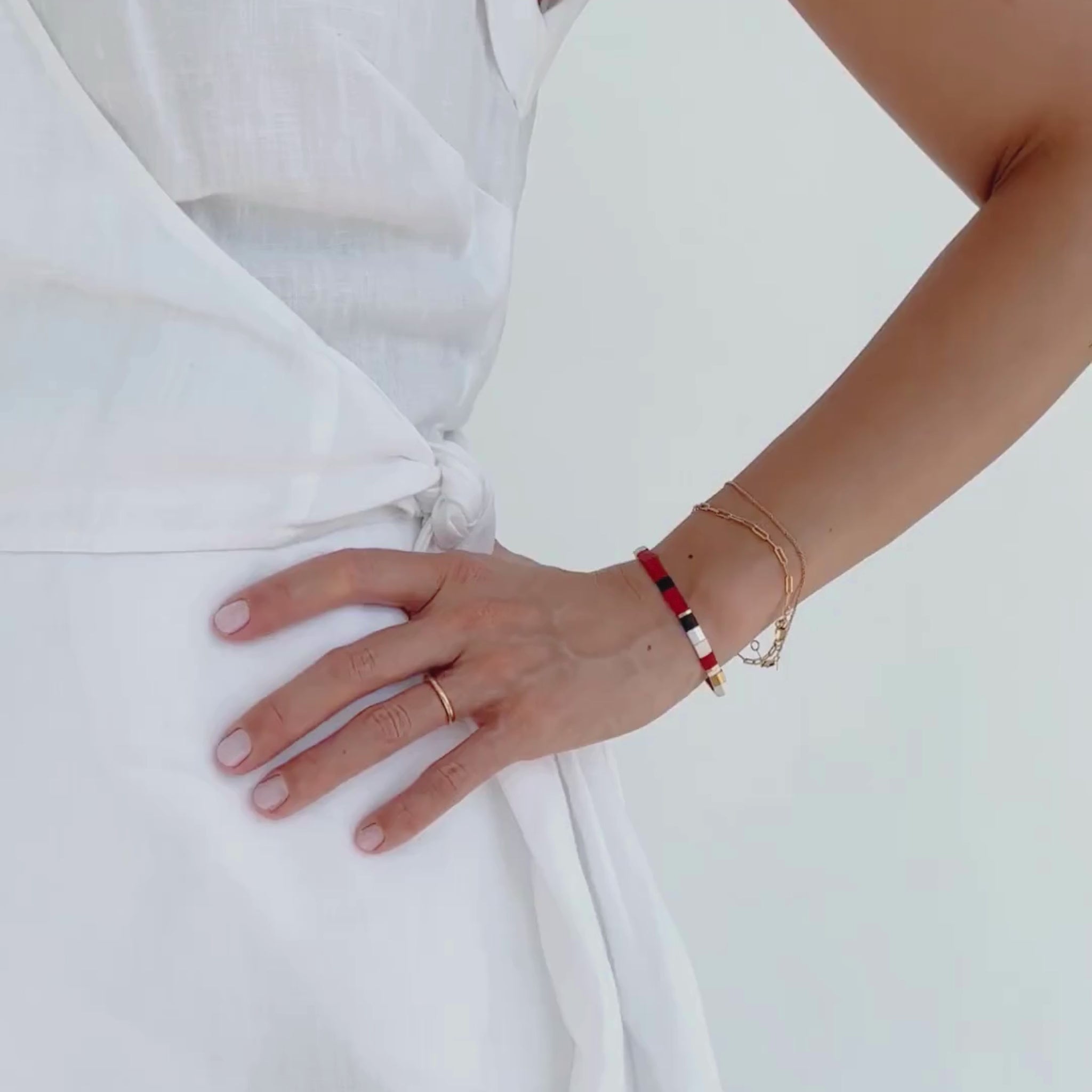 Although the glass beads are tempered to increase their durability, we recommend avoiding hard knocks or snags to not chip or break the beads. To maintain the longevity and lustre of your bracelet, we suggest removing it before swimming and showering and avoiding contact with creams, lotions and fragrances.