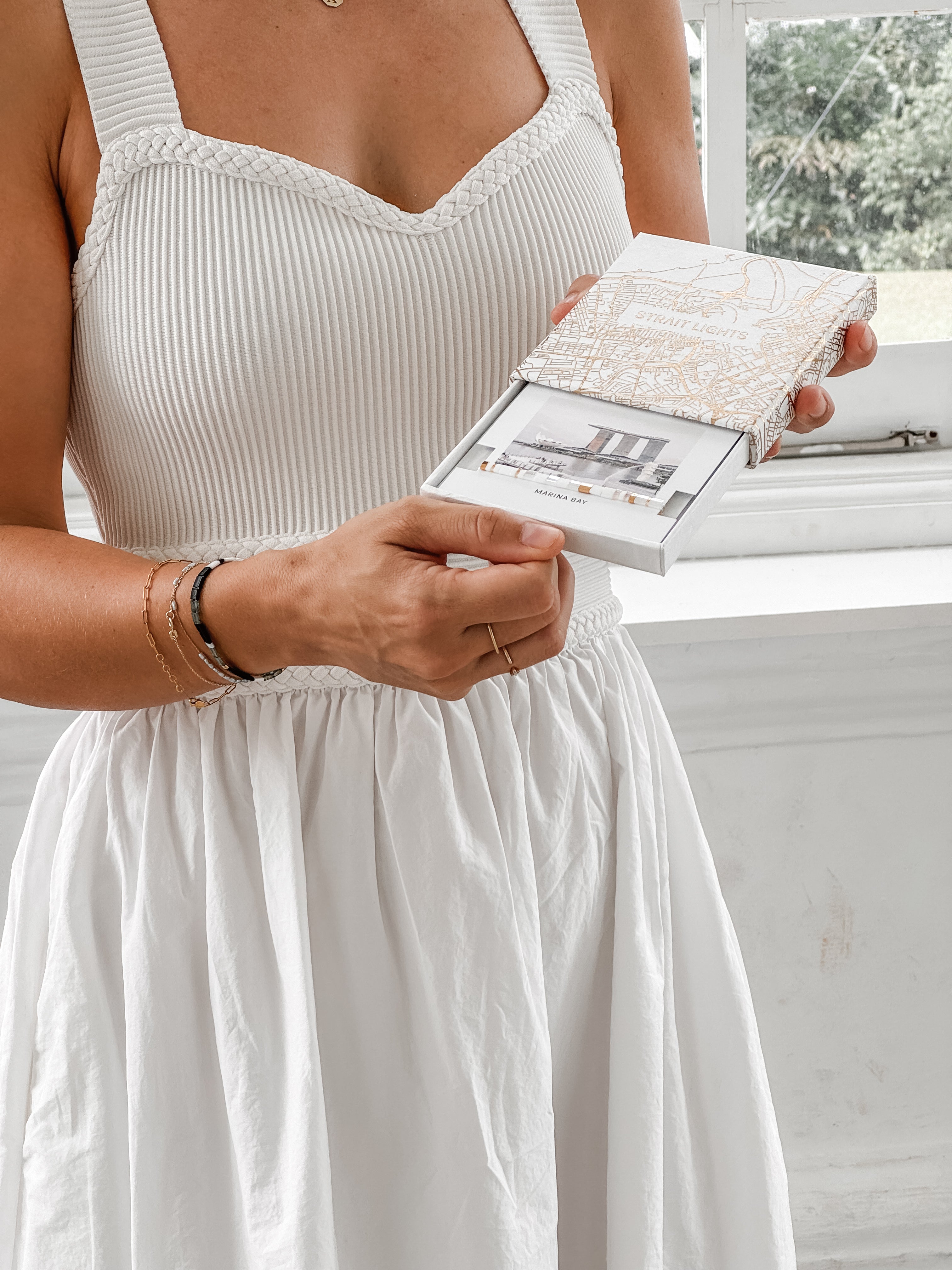 This is iconic Singapore. The glittering water, the architectural feats, and the mythical Merlion. In a simple white and gold, our Marina Bay Bracelet is perfect just by itself or stacked with any of our bracelets.